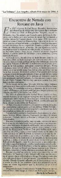 Encuentro de Neruda con Roxane en Java [artículo] / Darío de la Fuente. La Tribuna (Los Angeles, Chile)-- mayo 8, 2004, p. 3. .
