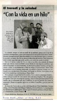 "Con la vida en un hilo" El travesti y la soledad [artículo] : Punto Final (Chile)-- mayo 2004, p. 23. retr. .
