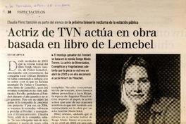 Actriz de TVN actúa en obra basada en libro de Lemebel [artículo] Cristián Campos M.
