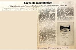 Un poeta magallánico [artículo] / Marino Muñoz Lagos. El Magallanes (Punta Arenas, Chile)-- mayo 23, 2004, p. 3. il. .