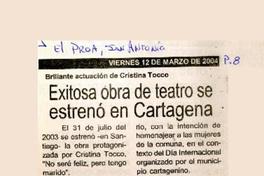 Exitosa obra de teatro se estrenó en Cartagena. [artículo] El Proa (San Antonio, Chile)-- mar. 12, 2004, p. 8. .