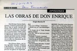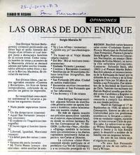 Las obras de don Enrique [artículo] / Sergio Morales M. Diario VI Región (San Fernando, Chile)-- mayo 25, 2004, p. 3. .