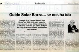 Guido Solar Barra... se nos ha ido [artículo] Carlos René Ibacache I.