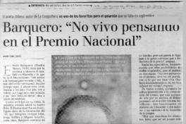 Barquero, "No vivo pensando en el Premio Nacional" [artículo] Andrés Gómez Bravo.