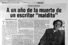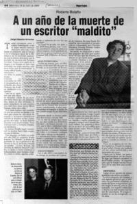 A un año de la muerte de un escritor "maldito" [artículo] / Jorge Abasolo Aravena. Renacer (Malleco, Chile)-- jul. 14, 2004, p. A6. retr. .