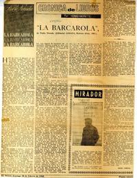 "La Barcarola" [artículo] / Yerko Moretic. El Siglo (Diario : Santiago, Chile)-- feb. 18, 1968, p. 14. .
