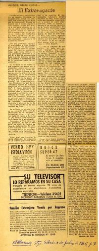 El Extravagante [artículo] / Hernán del Solar. El Mercurio (Diario : Santiago, Chile)-- jul. 3, 1965, p. 7. .