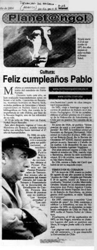 Feliz cumpleaños Pablo. [artículo] Renacer (Malleco, Chile)-- jul. 11, 2004, p. A12. retr. .