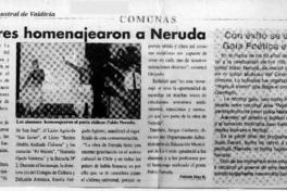 Escolares homenajearon a Neruda [artículo] Víctor Huaquín G.