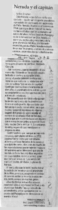 Neruda y el capitán [artículo] / Pablo Vildósola T. El Mercurio (Santiago, Chile)-- jul. 16, 2004, p. A2. .