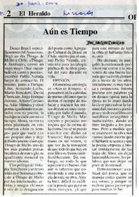 Aún es tiempo [artículo] / Andrés Pereira. El Heraldo (Linares, Chile)-- abr. 30, 2004, p. 2. .