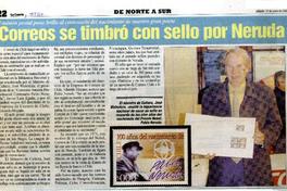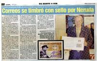 Correos se timbró con sello por Neruda [artículo]. La Cuarta (Diario : Santiago, Chile)-- jun. 12, 2004, p. 22. .
