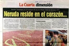 Neruda reside en el corazón... Emotivos homenajes por el Centenario de nuestro Premio Nobel de Literatura 1971 / [artículo] : M.R. y M.T. La Cuarta (Diario : Santiago, Chile)-- jul. 13, 2004, p. 24. .