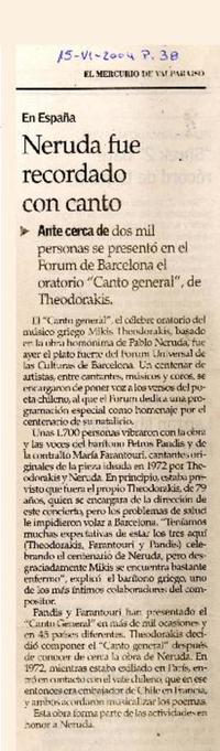 Neruda fue recordado con canto [artículo] El Mercurio (Valparaíso, Chile)-- jun. 15, 2004, p. 38. .