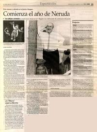 Comienza el año de Neruda Con múltiples actividades se dará inicio oficial en la V Región a la celebración del centenario del poeta [artículo] : El Mercurio (Valparaíso, Chile)-- mar. 10, 2004, p. 33. retr. .
