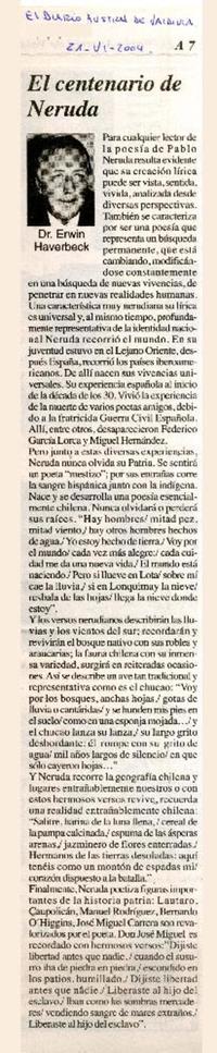 El centenario de Neruda [artículo] Erwin Haverbeck.