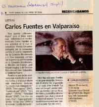 Carlos Fuentes en Valparaíso. [artículo] El Mercurio (Valparaíso, Chile)-- mar. 26, 2004, p. 4 (suplemento) retr. .