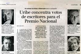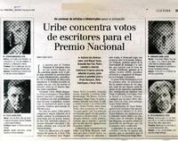 Uribe concentra votos de escritores para el Premio Nacional [artículo] Andrés Gómez Bravo.