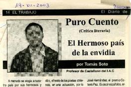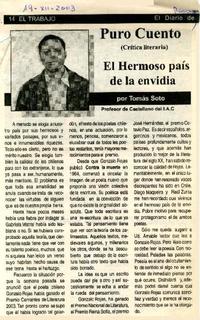 El hermoso país de la envidia [artículo] / Tomás Soto. El Trabajo (San Felipe, Chile)-- dic. 19, 2003, p. 14. retr. .