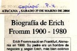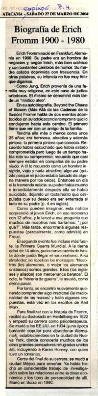 Biografía de Erich Fromm 1900-1980. [artículo] Atacama (Copiapó, Chile)-- mar. 27, 2004, p. 4. .