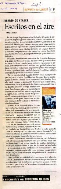 Escritos en el aire [artículo] / Mónica Blanco. El Mercurio (Santiago, Chile)-- jul. 23, 2004, p. 9 (suplemento "Revista de libros") il. .