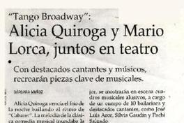 Alicia Quiroga y Mario Lorca, juntos en teatro [artículo] / Bárbara Muñoz. El Mercurio (Santiago, Chile)-- jul. 12, 2004, p. C16. retr. .