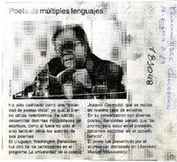 Poeta de múltiples lenguajes. [artículo] Panorama UDEC (Concepción, Chile)-- mayo 18, 2004, p. 19. retr. .