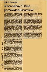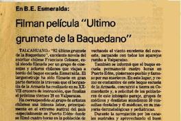 Filman película "Ultimo grumete de la Baquedano". [artículo] El Sur (Diario : Concepción, Chile)-- oct. 26, 1982, p. 12. .