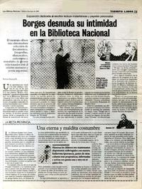 Borges desnuda su intimidad en la Biblioteca Nacional [artículo] / Rodrigo Castillo R. Las Últimas Noticias (Diario : Santiago, Chile)-- mayo 8, 2004, p. 37. retr. .