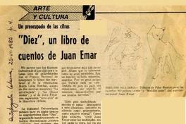 Diez", un libro de cuentos de Juan Emar [artículo] / Bernardo Soria. El Mercurio (Antofagasta, Chile)-- jun. 25, 1985, p. 4. El Mercurio (Calama, Chile)-- .