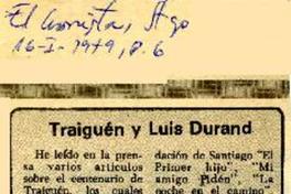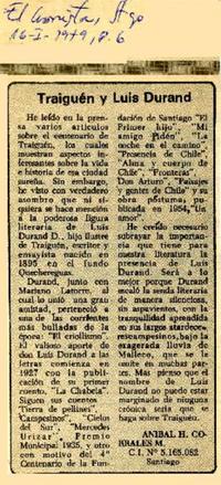 Traiguén y Luis Durand [artículo] / Aníbal H. Corrales M. El Cronista (Santiago, Chile)-- ene. 16, 1979, p. 6. .