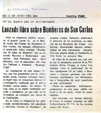 Lanzado libro sobre Bomberos de San Carlos. [artículo] El Esfuerzo (San Carlos, Chile)-- jun. 18, 2004, p. 3. .
