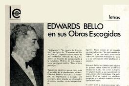 Edwards Bello en sus obras escogidas. [artículo] Qué Pasa (Revista : Santiago, Chile)-- no. 16 (agosto 5, 1971), p. 43. .