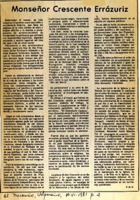 Monseñor Crescente Errázuriz [artículo] / F. D. V. El Mercurio (Valparaíso, Chile)-- jun. 10, 1981, p. 3. .