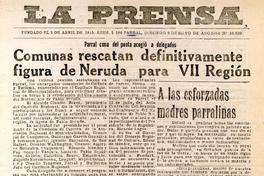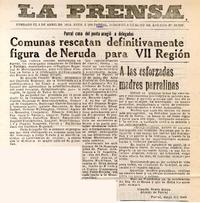 Comunas rescatan definitivamente figura de Neruda para VII región. [artículo] La Prensa (Parral, Chile)-- mayo 9, 2004. .