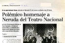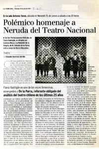 Polémico homenaje a Neruda del Teatro Nacional [artículo] / Eduardo Guerrero del Río. La Tercera (Santiago, Chile)-- jul. 25, 2004, p. 61. retr. .