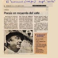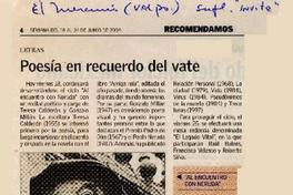 Poesía en recuerdo del vate. [artículo] El Mercurio (Valparaíso, Chile)-- jun. 18, 2004, p. 4 "suplemento "Invite"). retr. .