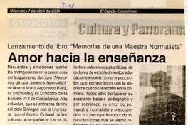 Amor hacia la enseñanza. [artículo] El Espejo (Casablanca, Chile)-- abr. 7, 2004, p. 11. retr. .