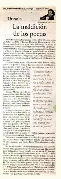 La Maldición de los poetas [artículo] / Gonzalo Contreras. Las Últimas Noticias (Diario : Santiago, Chile)-- jul. 11, 2004, p. 9. retr. .