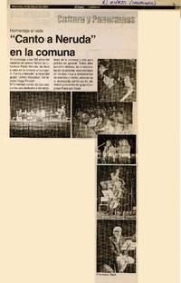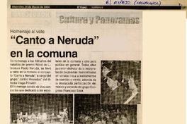 Canto a Neruda" en la comuna. [artículo] El Espejo (Casablanca, Chile)-- mar. 24, 2004, p. 11. .