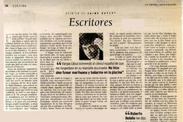 Escritores [artículo] / Jaime Bayly. La Tercera (Santiago, Chile)-- jul. 26, 2004, p. 34. retr. .