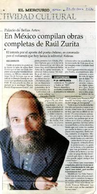 En México compilan obras completas de Zurita [artículo] / Heidi Schmidlin M. El Mercurio (Santiago, Chile)-- jul. 22, 2004, p. C10. retr. .