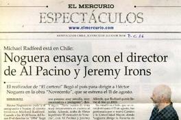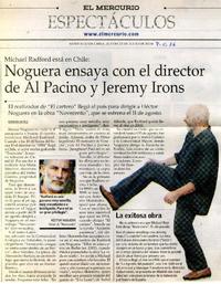 Noguera ensaya con el director de Al Pacino y Jeremy Irons [artículo] / Bárbara Muñoz. El Mercurio (Santiago, Chile)-- jul. 22, 2004, p. C16. retr. .