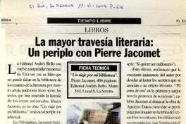 La Mayor travesía literaria: Un periplo con Pierre Jacomet. [artículo] El Día (Diario : La Serena, Chile)-- jun. 11, 2004, p. 24. il. .