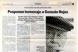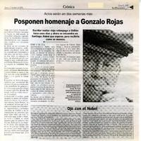Posponen homenaje a Gonzalo Rojas. [artículo]