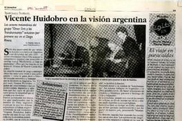 Vicente Huidobro en la visión argentina [artículo] / Paulina Ossa M. El Llanquihue (Diario : Puerto Montt, Chile)-- jun. 17, 2004, p. A9. retr. .