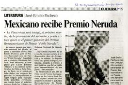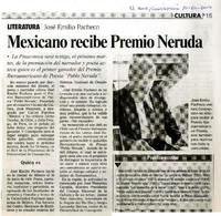 Mexicano recibe Premio Neruda [artículo] El Sur (Diario : Concepción, Chile)-- jul. 10, 2004, p. 15. retr. .