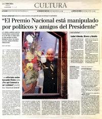 El Premio Nacional está manipulado por políticos y amigos del Presidente" [artículo] / Andrés Gómez. La Tercera-- jul. 24, 2004, p. 48. retr. .