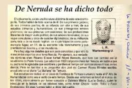 De Neruda se ha dicho todo [artículo] Luis R. Wartemberg Uribe.