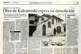 Obra de Kulczewski espera su demolición [artículo] / Ana María Hurtado. El Mercurio (Santiago, Chile)-- jun. 26, 2004, p. C15. .
